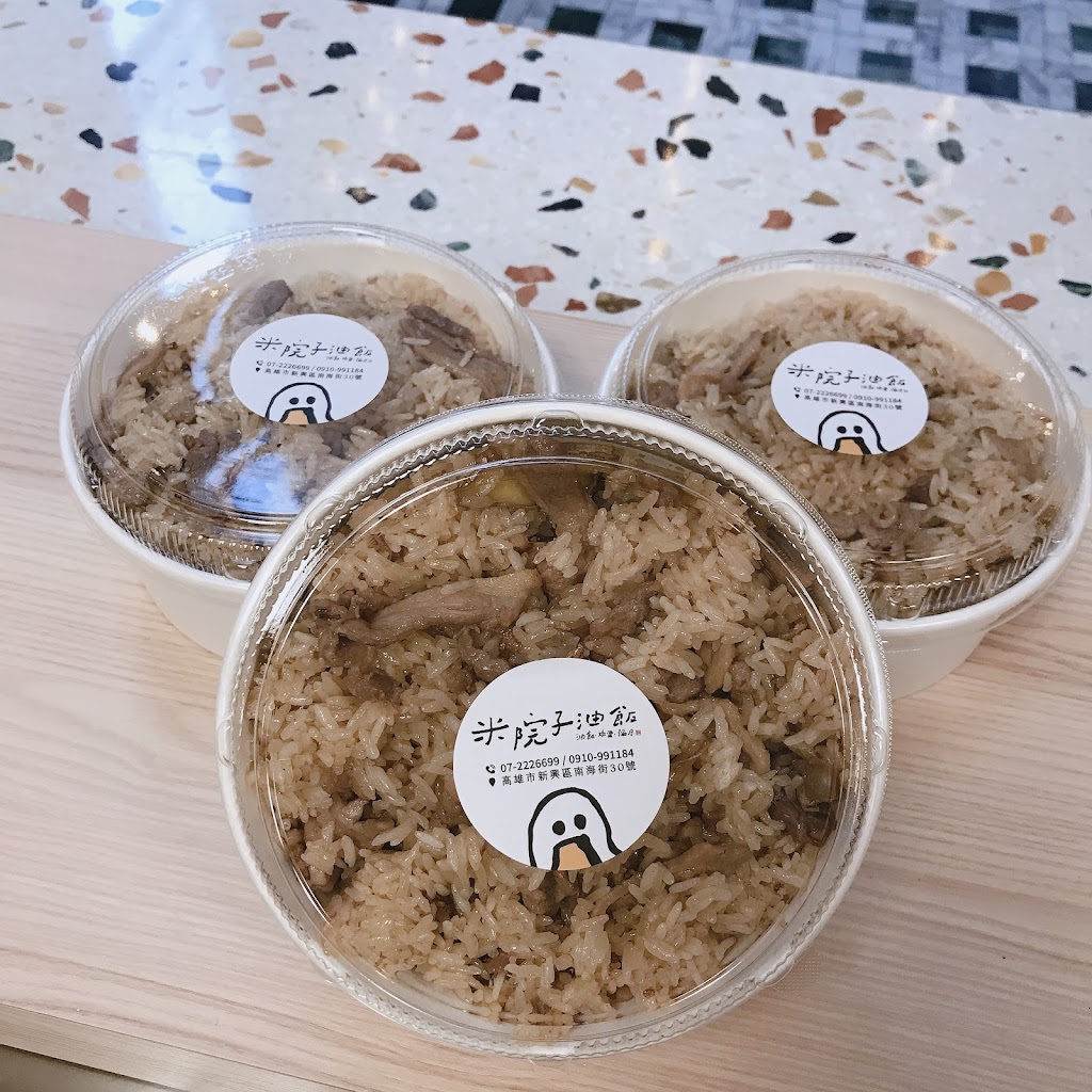 店名:米院子油飯 · 地址:高雄市新興區南海街30號 · 電話: 07 222 6699 · 營業時間:週二~週六,AM 10:30~PM 6:00 (週日、週一公休) · 官方FB:米院子油飯.