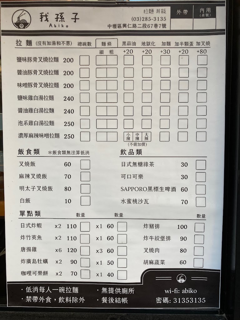 全台美食旅遊住宿on Instagram: " #我孫子Abiko / #桃園#中壢#元智大學#味噌豚骨叉燒拉麵$180 #濃厚雞白湯拉麵$220 #叉燒肉飯$60