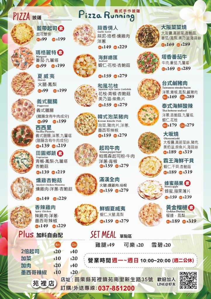 Pizza Running 苑裡店最新菜單