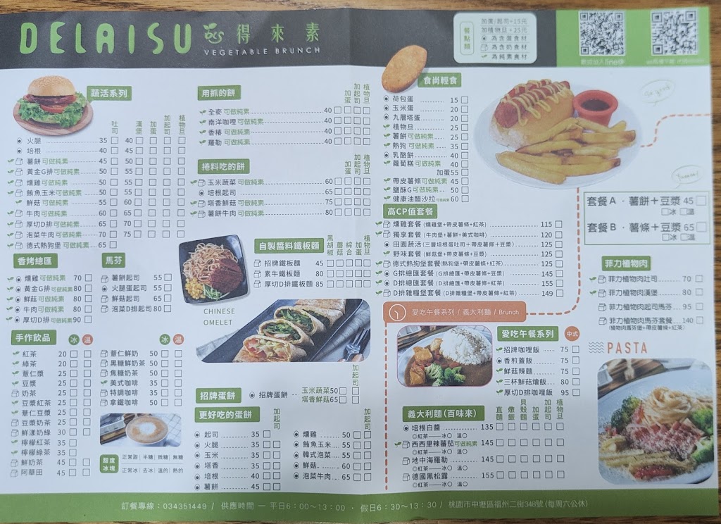 得來素蔬食早午餐-中壢福州店地址、電話、菜單、訂位、營業時間(PTT/Dcard/mobild01評價)