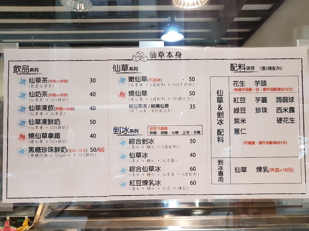 仙草本身菜單本身除了挫冰以外,全部都是以仙草為主,大至上價格都在50元以下,消費真的算很便宜,台北很多賣仙草的都不是這個價,而且嫩仙草有四種料才賣 ...