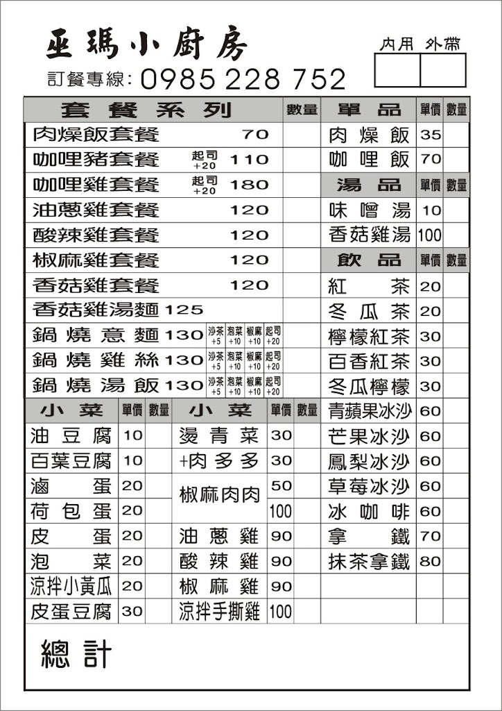 巫瑪咖哩肉燥小廚房地址、電話、菜單、訂位、營業時間(PTT/Dcard/mobild01評價)